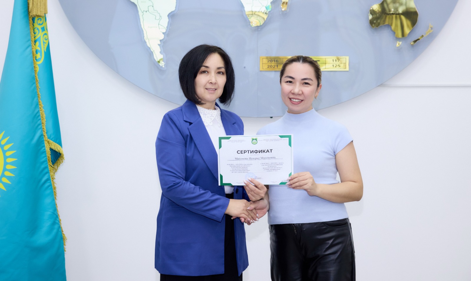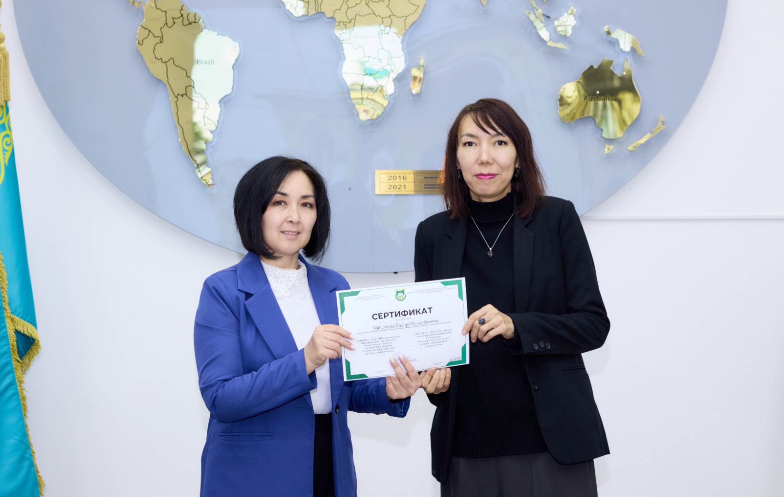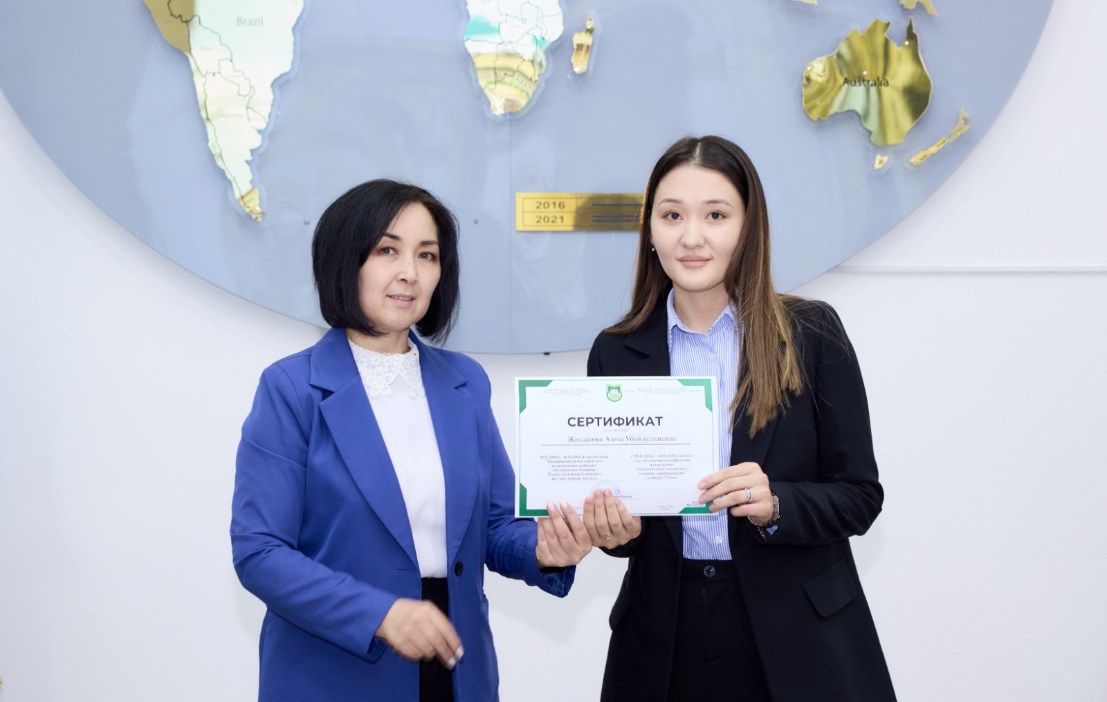 Курс қорытындысы бойынша Біліктілікті арттыру бөлімі ұйымдастыруымен ҚазҰАЗУ-дың жас мамандарына ресми сертификаттар табысталды.