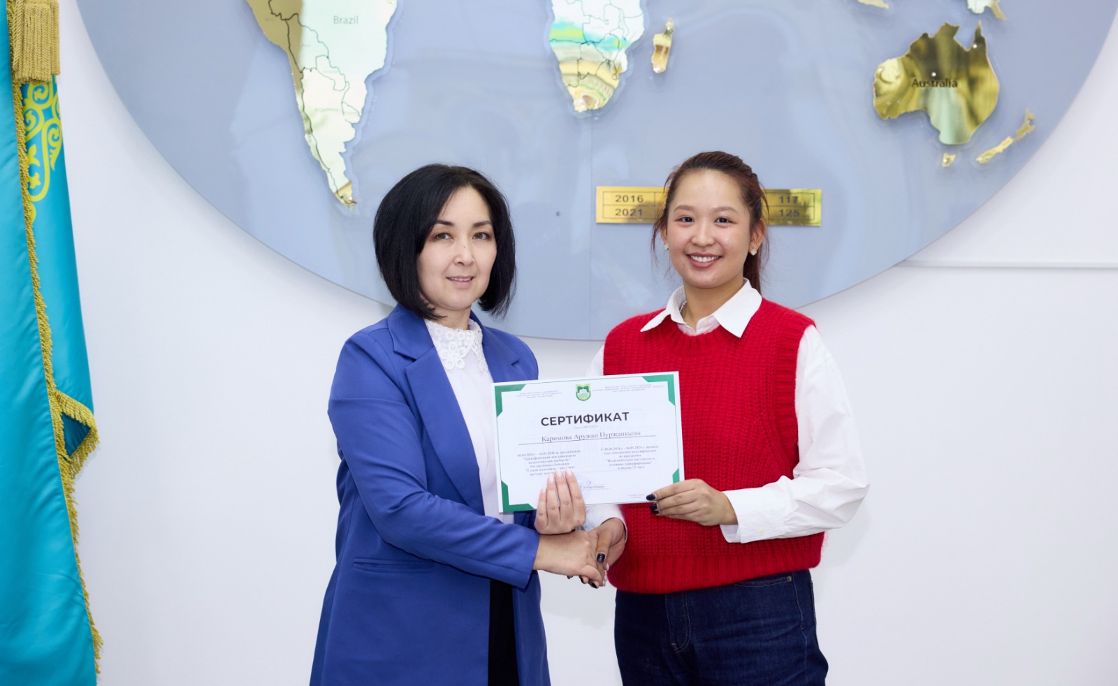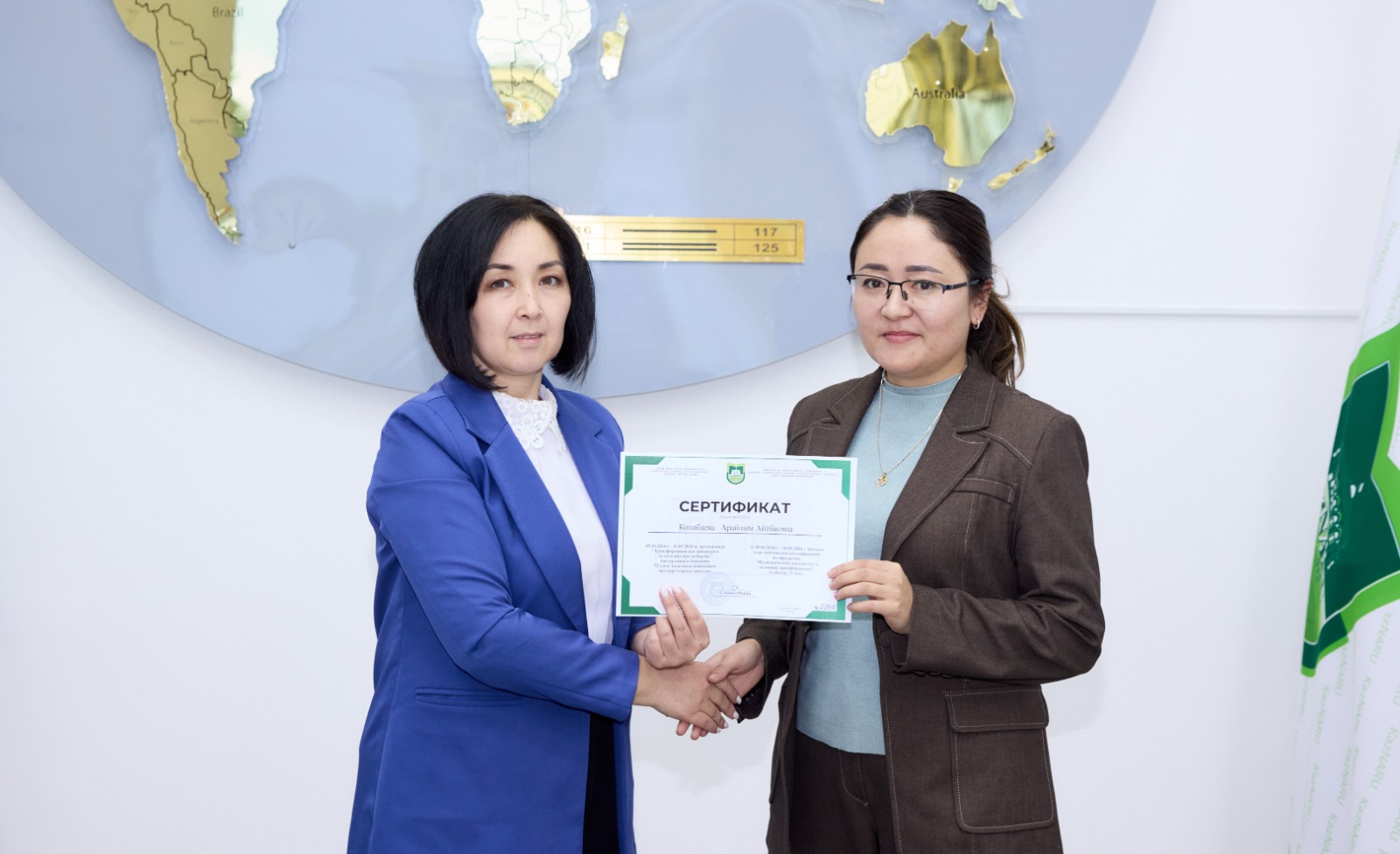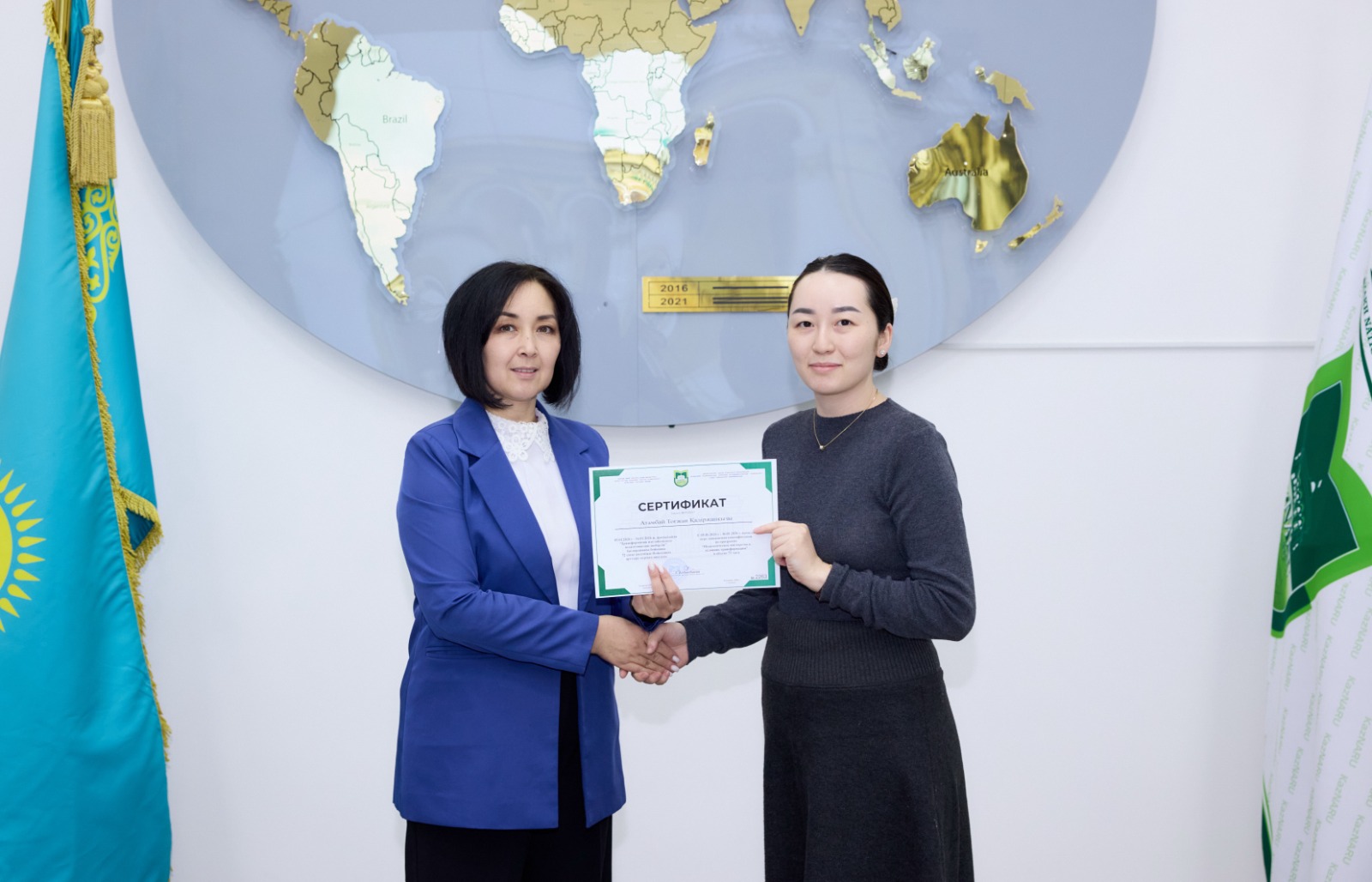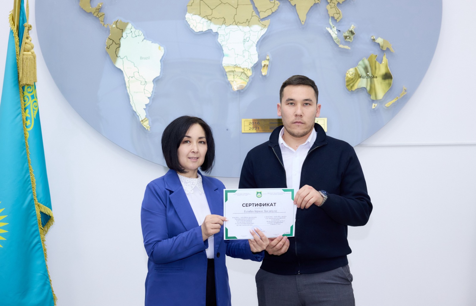 Курс қорытындысы бойынша Біліктілікті арттыру бөлімі ұйымдастыруымен ҚазҰАЗУ-дың жас мамандарына ресми сертификаттар табысталды.