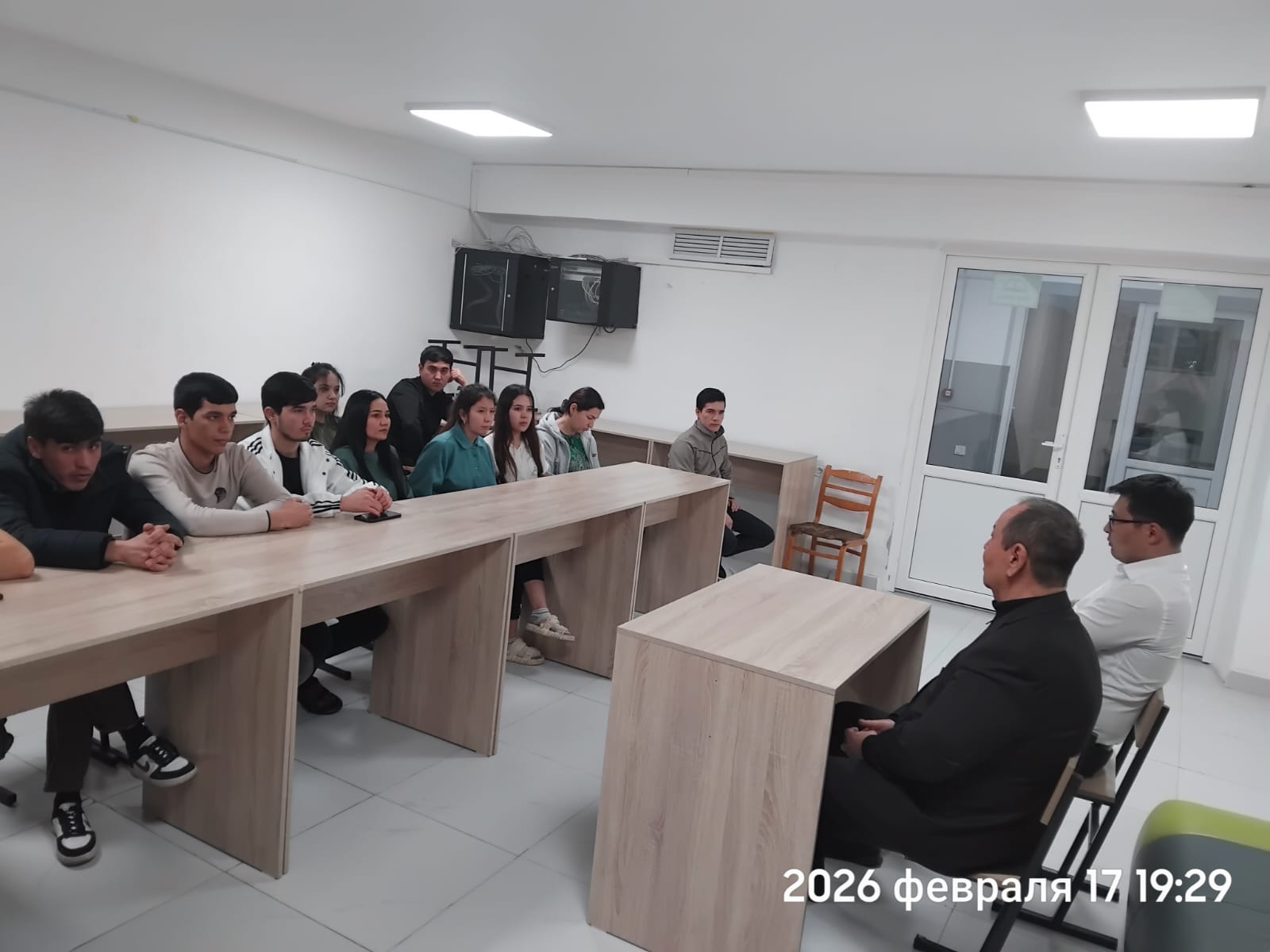 17.02.2026 жылы "Зооинженерия және биотехнология" кафедрасының профессоры Буралхиев Батырхан Азимханович, факультеттің тәрбие жұмысы бойынша орынбасары Спатай Нурәділ Нұрбекұлы және кафедраның оқытушылары, «Сапалы білім саналы тәрбиеден басталады» атты іс-шарасын №9 «Ақбота» студенттері үйінде тұратын «6В05102-Биотехнология» білім беру бағдарламасының түркімен студенттеріне өткізді.
