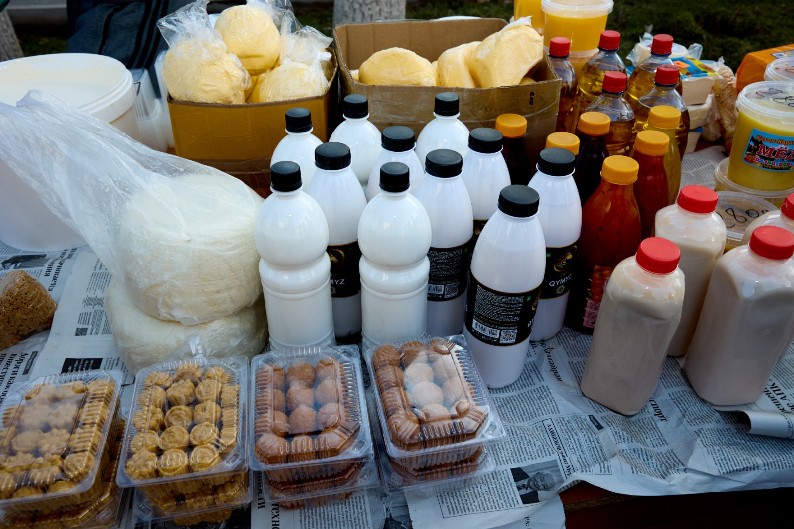 Сүт өнімдері де кеңінен ұсынылып, дастарханның берекесін келтірер құрт, айран, қымыз, қарын май, ірімшік және тағы басқа табиғи өнімдер көпшілікке қолжетімді болды. Бұдан бөлек, шұжық өнімдері мен қатырылған балық котлеттері де сатылымға шығарылды. Ал алма, банан, мандарин секілді жеміс-жидектер мен қызанақ, қияр секілді тағы да басқа көкөністер де болды.