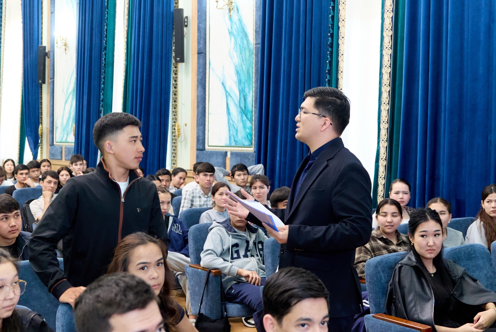 Кездесудің модераторы - Жастар ісі жөніндегі басқарманың әлеуметтік-құқықтық жұмыс бойынша жетекші маманы Мақсат Иманбеков кіріспе сөзінде жастарға дұрыс бағыт-бағдар беру, олардың бойында жауапкершілік пен адамгершілік құндылықтарды қалыптастырудың маңыздылығын атап өтті.