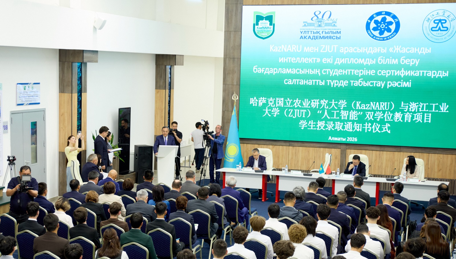 2026 жылдың 8 сәуірінде Қазақ ұлттық аграрлық зерттеу университетінде Қытайдың Чжэцзян технологиялық университетімен бірлесіп жүзеге асырылып жатқан "Жасанды интеллект" екі дипломды білім беру бағдарламасының студенттеріне сертификаттар табыстау рәсімі салтанатты түрде өтті.