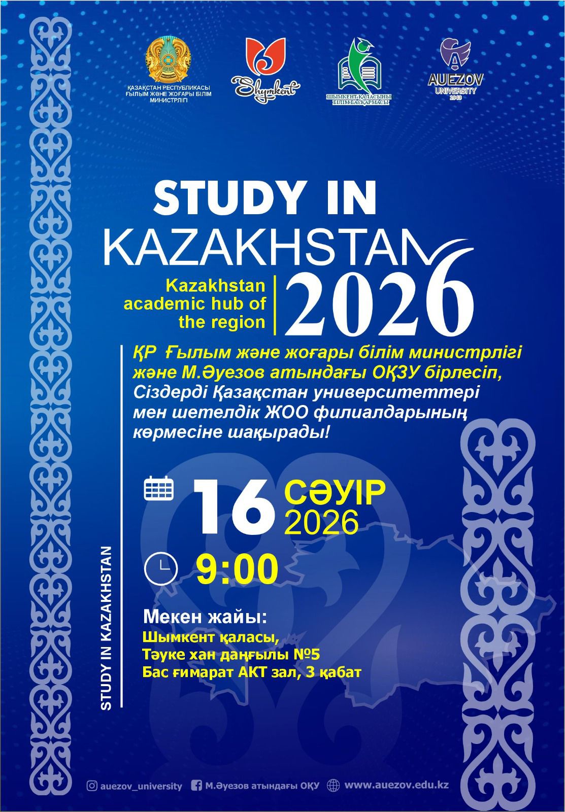 Қазақстан Республикасы Ғылым және жоғары білім министрлігінің ұйымдастыруымен 2026 жылы мектеп бітіруші түлектерге кәсіби бағдар беру мақсатында «Study in KZ» білім беру көрмесі өтеді.