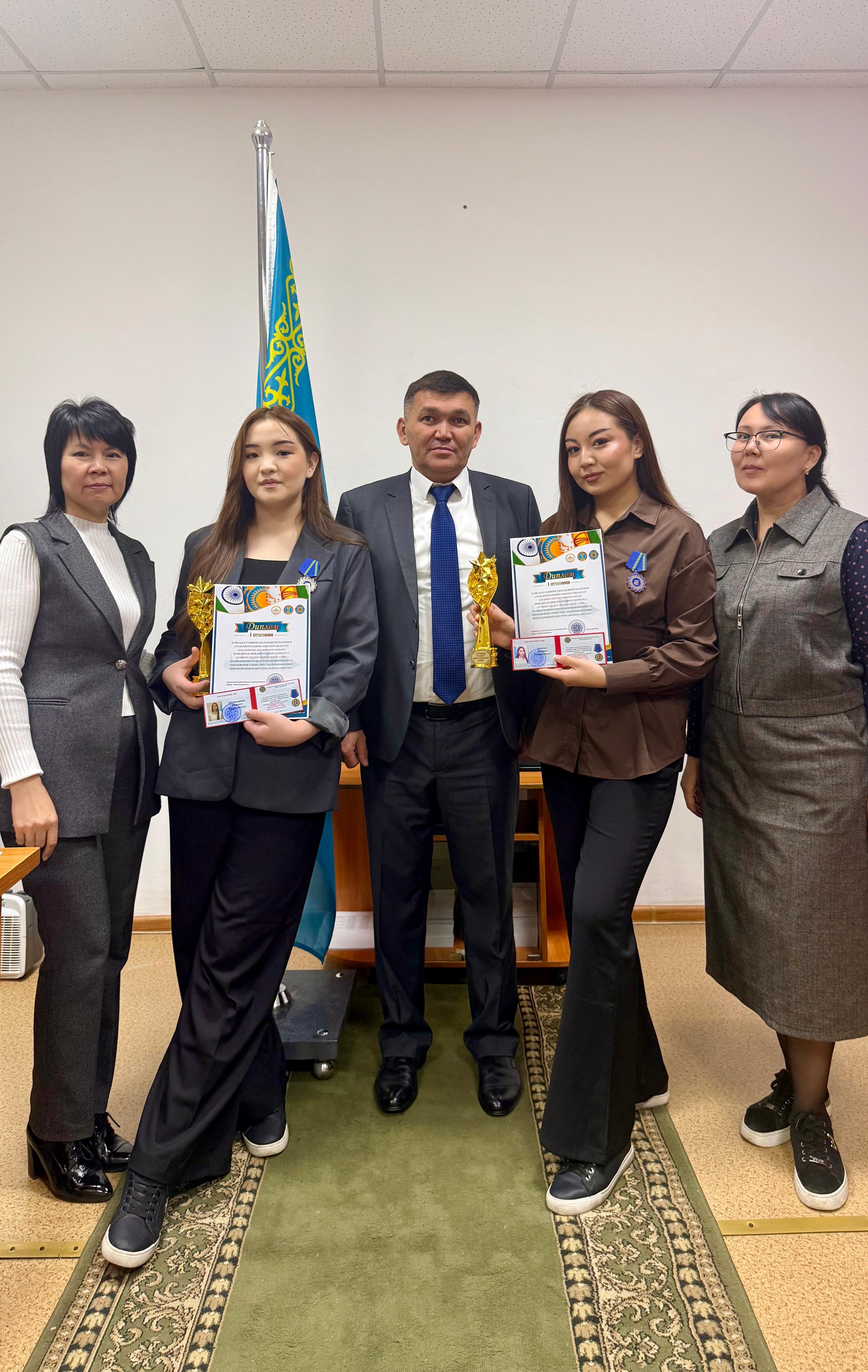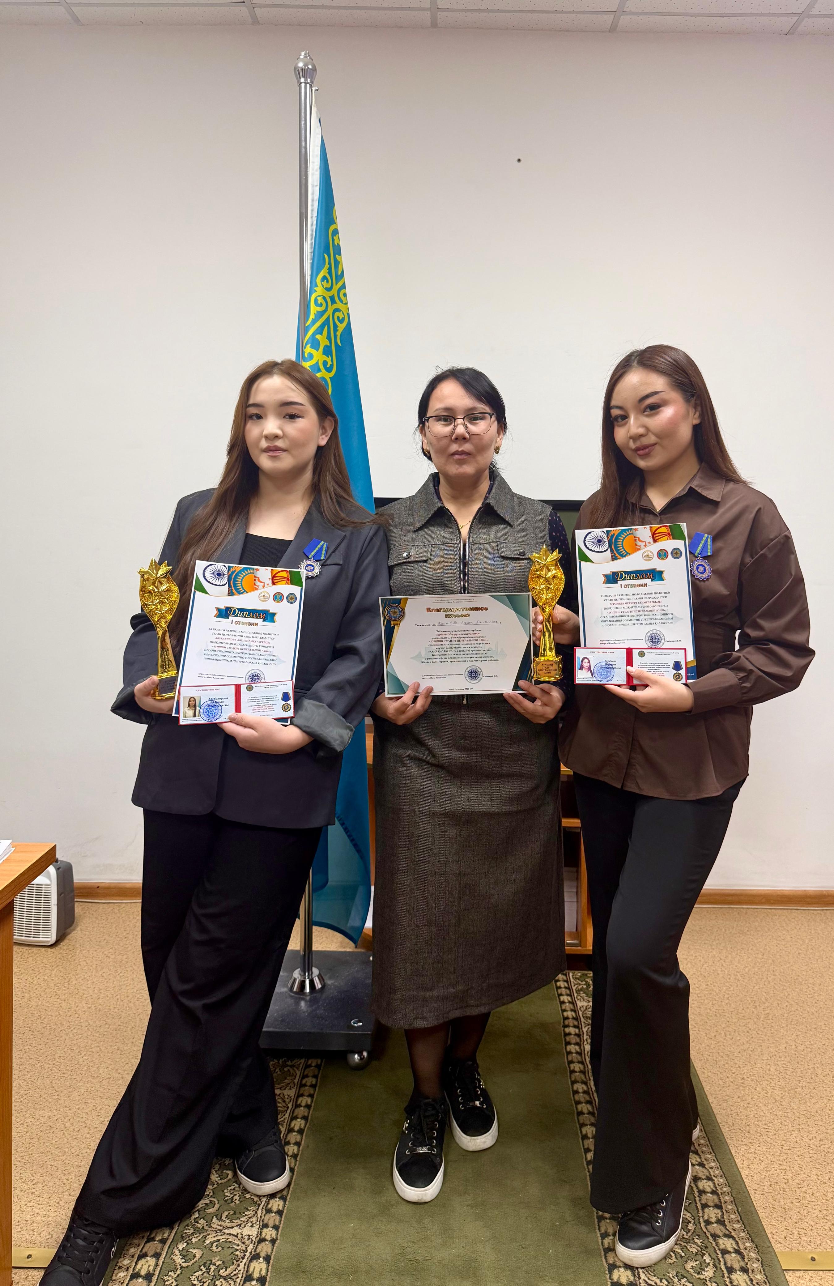 Байқау қорытындысы бойынша студенттер «ОРТА АЗИЯНЫҢ ҮЗДІК СТУДЕНТІ» төсбелгісімен, арнайы куәлікпен, естелік статуэткамен және І дәрежелі халықаралық дипломдармен марапатталды.