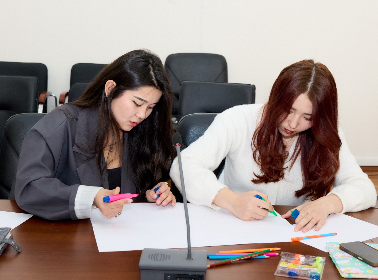 Іс-шараның тәжірибелік бөлімін Президенттік орталықтың аға сарапшысы Үмбетова Күнзия Ағымбайқызы жүргізді. Студенттер интерактивті тапсырмалар мен топтық жаттығулар орындау арқылы теориялық білімдерін бекітіп, сыни ойлау қабілеттерін, коммуникациялық дағдыларын және көшбасшылық әлеуетін дамытуға бағытталған жұмыс түрлеріне белсене қатысты.