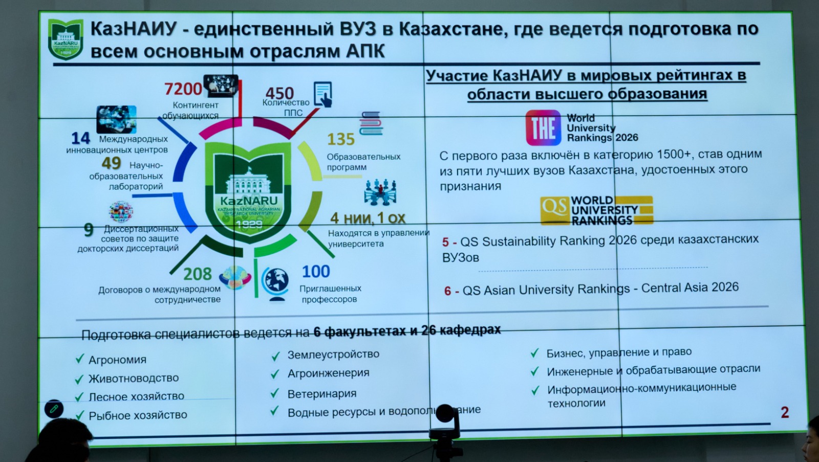 2026 жылдың 22 сәуірінде Қазақ ұлттық аграрлық зерттеу университетінде 11 сынып оқушыларымен «Мамандықты дұрыс таңдау – болашаққа бастар жол» атты кәсіби бағдар беру бағытында онлайн және офлайн форматта кездесу өтті.