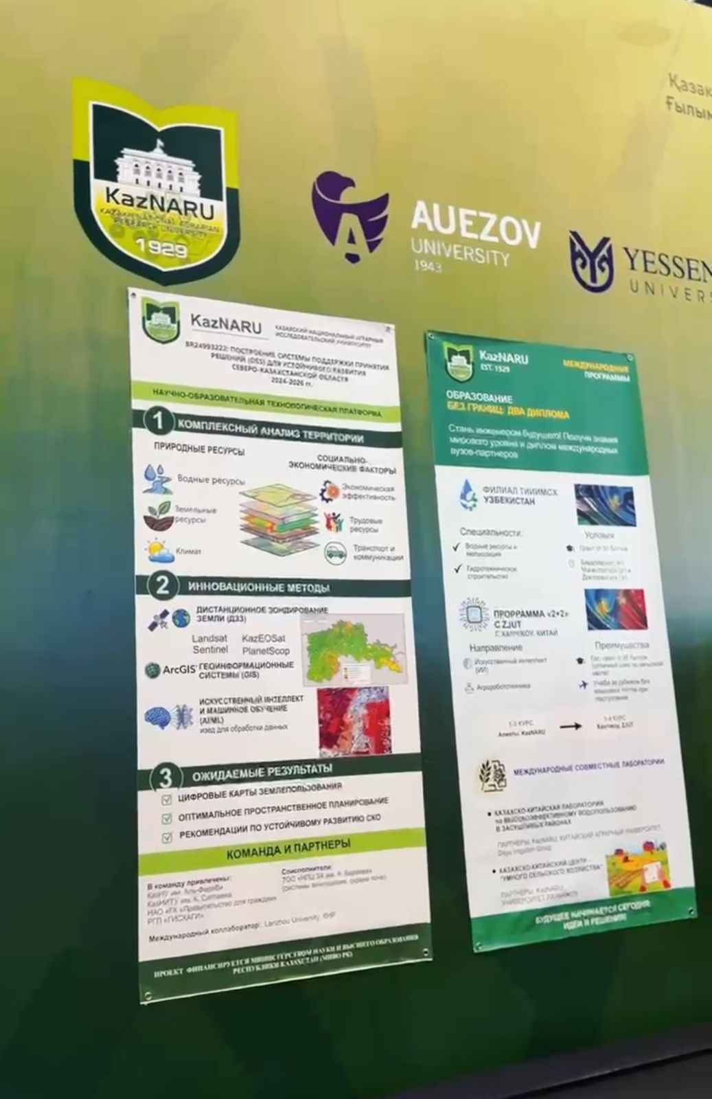 Чжэцзян технологиялық университетімен бірлесіп су шаруашылығы саласында «Жасанды интеллект» және «Робототехника» бағыттары бойынша 2+2 форматындағы екідипломды білім беру бағдарламалары жүзеге асырылуда.