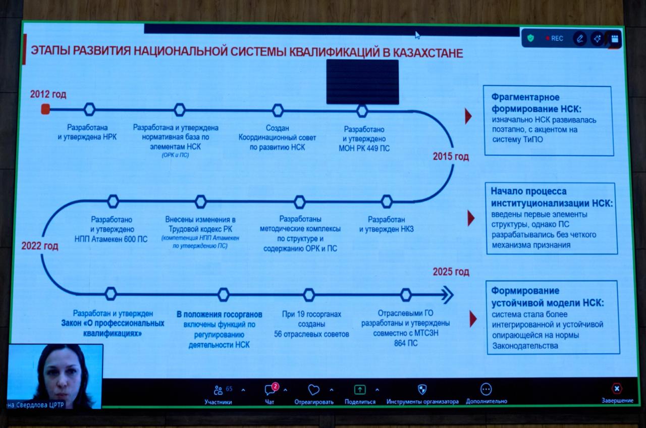 «Еңбек ресурстарын дамыту орталығы» АҚ -ның салалық біліктілік жүйесін үйлестіру департаментінің бас сарапшысы Свердлова Елена Александровна еңбек нарығының трансформациясы жағдайында Ұлттық біліктілік жүйесінің рөлін айқындады.
