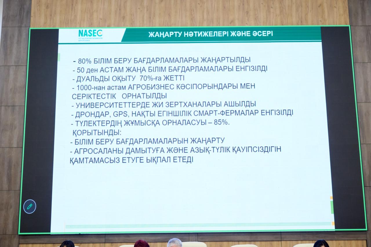 Семинар тәжірибе алмасуға, келісілген шешімдерді әзірлеуге және Қазақстанның агроөнеркәсіптік кешенін дамытудың стратегиялық міндеттеріне жауап беретін заманауи білім беру бағдарламаларын әзірлеуге арналған маңызды сараптама алаңына айналды.