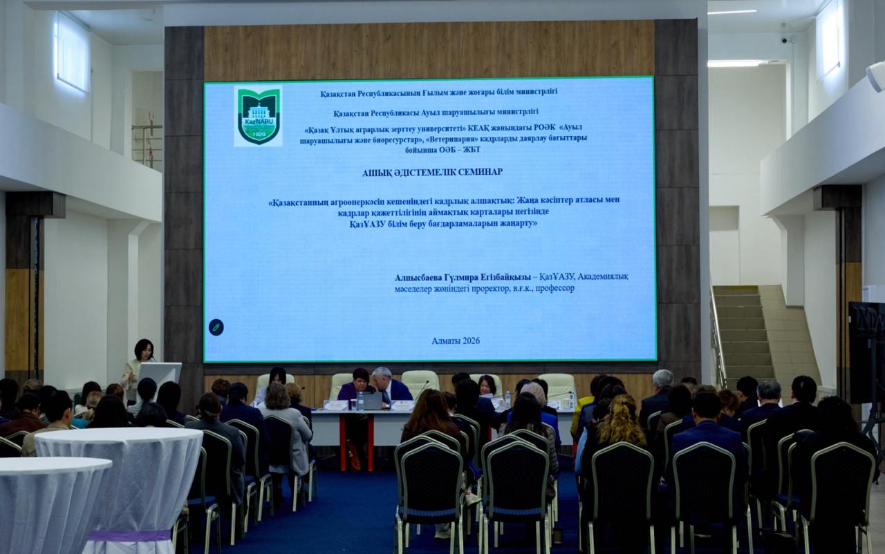 2026 жылдың 28 сәуірінде Қазақ ұлттық аграрлық зерттеу университетінде «Салалық жаңа кәсіптер мен құзыреттер атластары, кадрларға қажеттіліктің өңірлік карталары негізінде білім беру бағдарламаларын әзірлеу және жаңарту» тақырыбында ашық әдіснамалық семинар өтті. «Қазақ Ұлтық аграрлық зерттеу университеті» КЕАҚ жанындағы «Ауыл шаруашылығы және биоресурстар» және «Ветеринария» кадрларды даярлау бағыттары бойынша оқі әдістемелік бірлестігі Республикалық оқу әдістемелік кеңесі аясында жүргізілді.