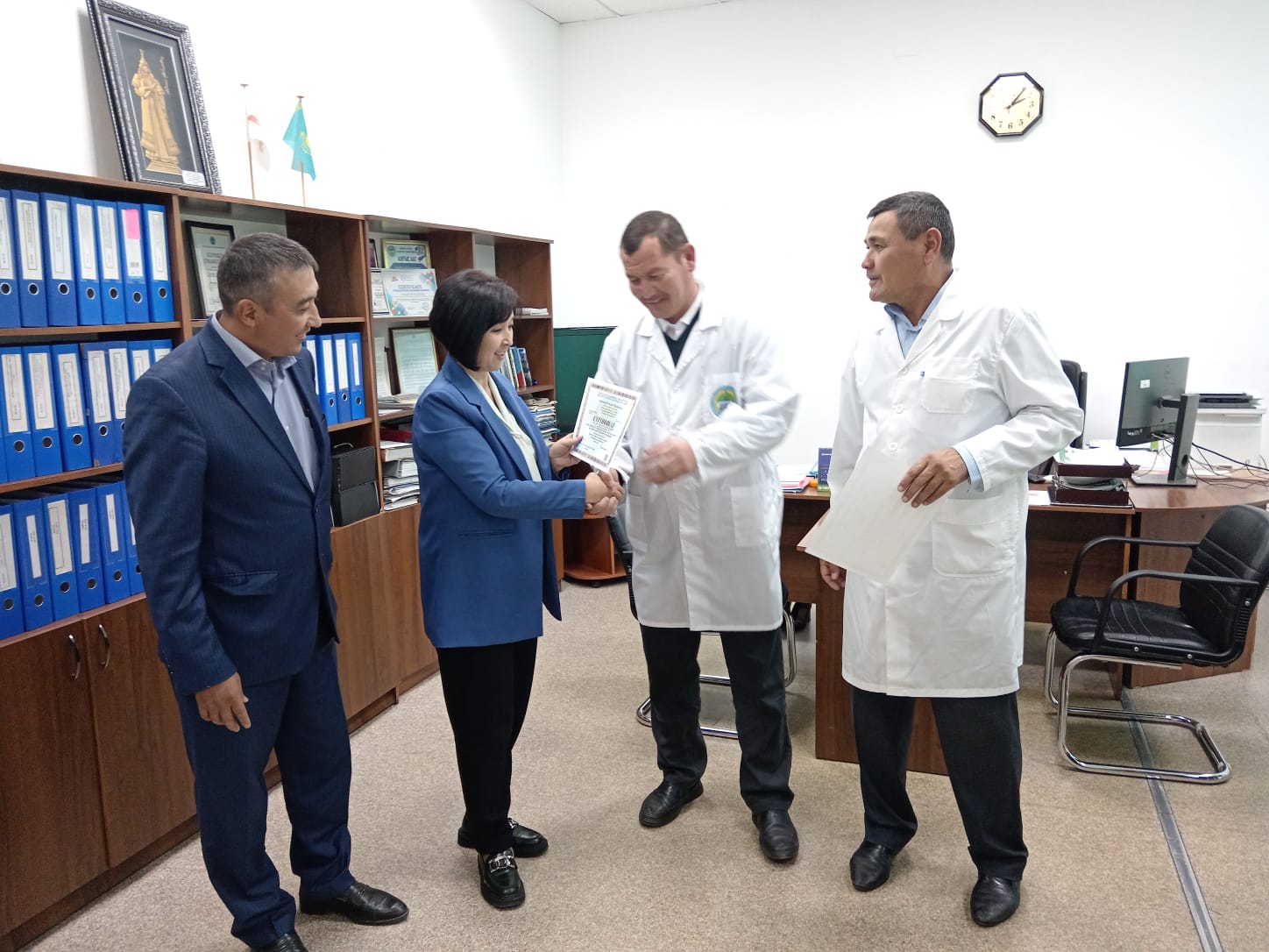 Университетіміздің Ветеринария факультеті «Акушерлік, хирургия және өсіп-өну биотехнологиясы» кафедрасының профессорларының ұйымдастыруымен үш түрлі біліктілікті артыру курсы жүргізіледі. Осы курстар аясында 2023 жылдың қыркүйек айында «Ветеринарлық акушерлік және гинекология» курсы бойынша Өзбекстан Республикасы, Нүкіс қаласында орналасқан «Самарқанд ветеринариялық медицина, мал шаруашылығы және биотехнология» университеті филиалы, «Зооинженер» кафедрасының оқытушылары Айтжанов Рустембай Тургамбаевич пен Худаяров Рустам Юсупович біліктілігін арттырды. Келген оқытушыларға біліктілікті артыру бағдарламасы бойынша кестеге сәйкес кафедра профессорлары Жоланов М.Н., Усенбеков Е.С., Қойбағаров Қ.У. дәріс оқып, тәжірибелік сабақтар жүргізді.