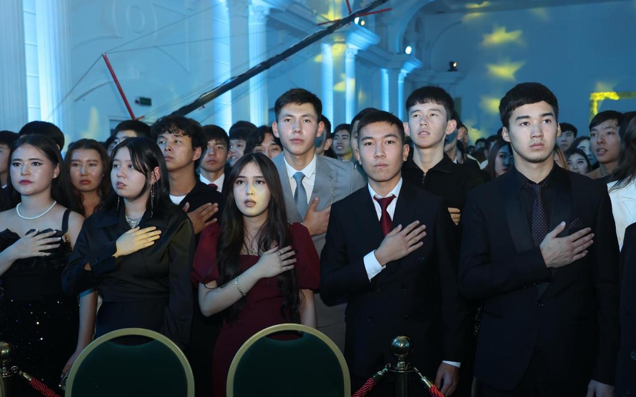 Алматының орталығындағы ең көрікті, ең әсем салтанат сарайында есте қаларлықтай әсерлі кеш ұйымдастырып, балғын жастарға тамаша мерекелік көңіл-күй сыйлаған университет басшылығына бірінші курс студенттері өздерінің ризалышықтарын білдіріп, жүректен шығарған өлең-жырларын арнады.