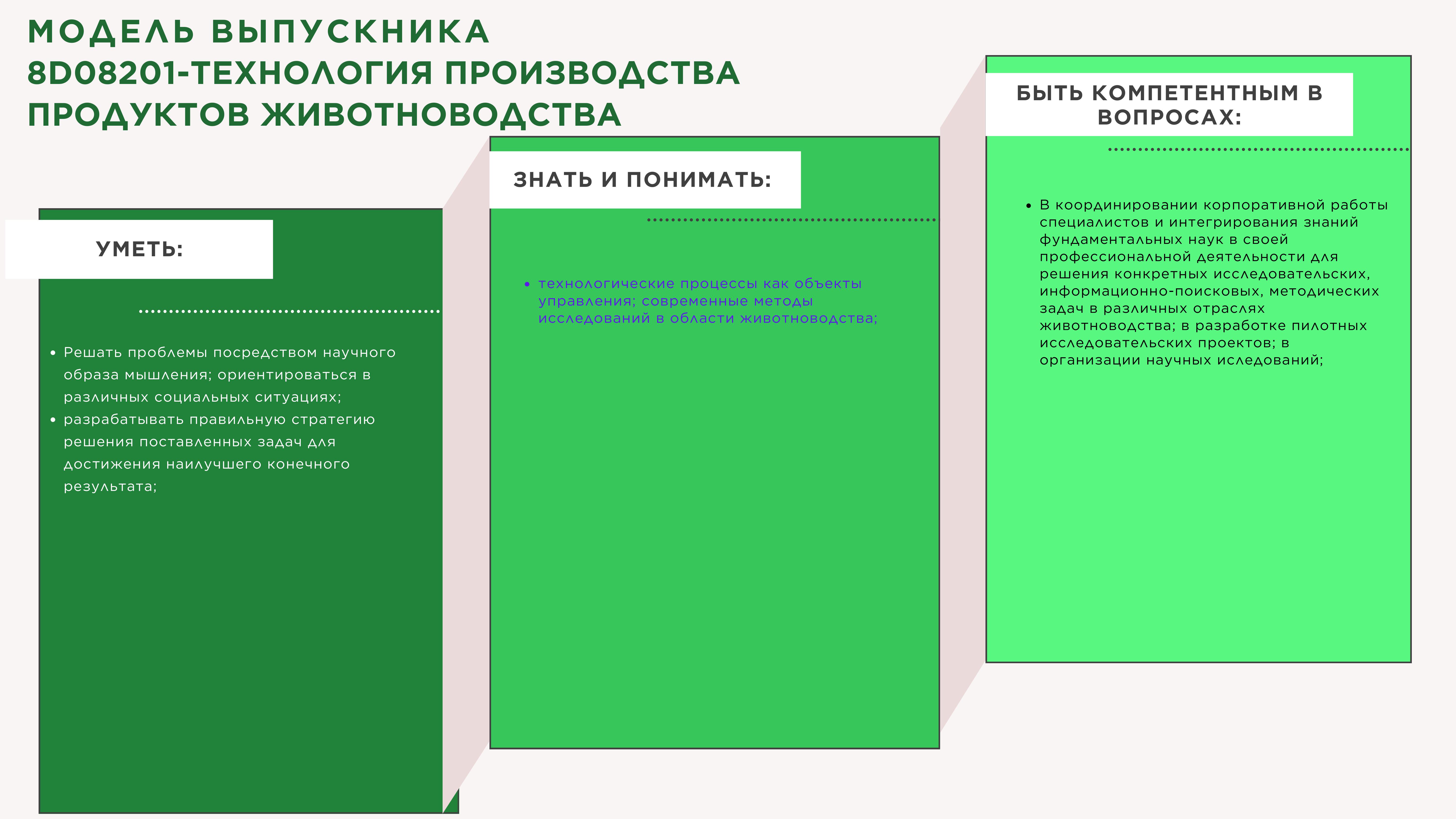 Образовательная программа 8D08201- Технология производства продуктов животноводства включает 4 (четыре) образовательные траектории: