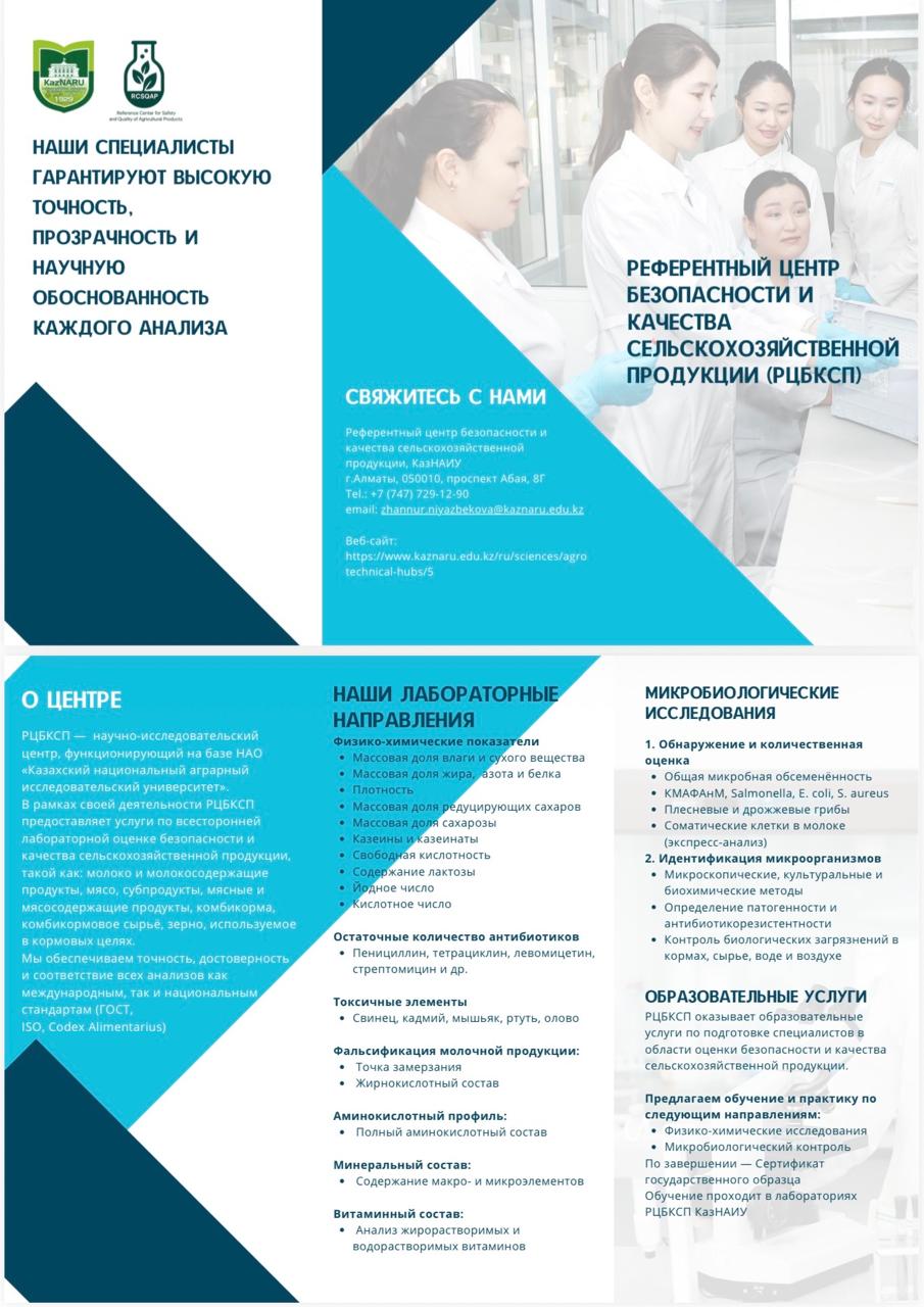 Орталықтың құрылымына 2020 жылғы 16 қаңтарда «Қазақстан Республикасының агроөнеркәсіптік кешені үшін кадрлар даярлауға арналған зерттеу зертханаларын құру» жобасы аясында (№30-жқ бұйрық) құрылған Сүт өнімдерінің референттік зертханасы кіреді. Зертхананың салтанатты ашылуы 2020 жылғы желтоқсан айында өтті.